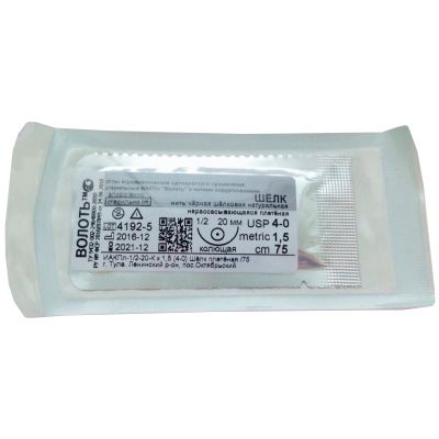 Шелк плетеный с РЕЖУЩЕЙ ИГЛОЙ №4/0 ИАКПл -1/2-20-Р х1,5 75см