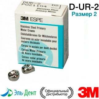 Коронки D-UR-2 из нержавеющей стали Stainless Steel Crowns для временных зубов в отд. уп.: Первый верхний правый, р-р2, 2шт.