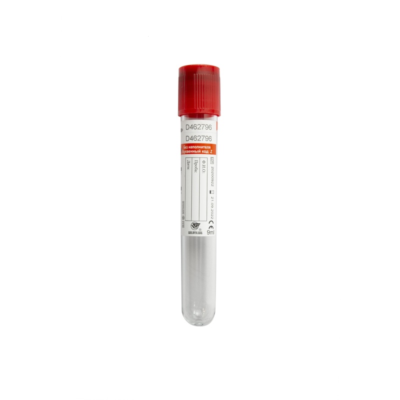 Пробирка вакуумная без активатора 9 мл.; красная крышка